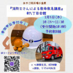 2026年2月17日 / 最終更新日時 : 2026年2月17日 おやこDE広場小金原STAFF お知らせ 申込受付中!「消防士さんによる救命救急講座」3/5(木) 「消防士さんによる乳幼児救命講座」 小金消防署の消防士さんに来ていただいて、 乳幼児おやこさん向けに、 AED講習や異物除去の方法を教えていただきますよ☺︎ 日時:3月5日(木)10:00〜11:30 (受 […]