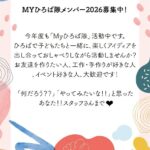 2026年3月15日 / 最終更新日時 : 2026年3月15日 おやこDE広場小金原STAFF お知らせ 2026年度「Myひろば隊」メンバー募集中です! ⭐︎Myひろば隊からのお知らせ⭐︎ Myひろば隊メンバー2026募集中!! 今年度も「Myひろば隊」活動中です。 ひろばで子どもたちと一緒に、楽しくアイディアを出し合っておしゃべりしながら活動 […]
