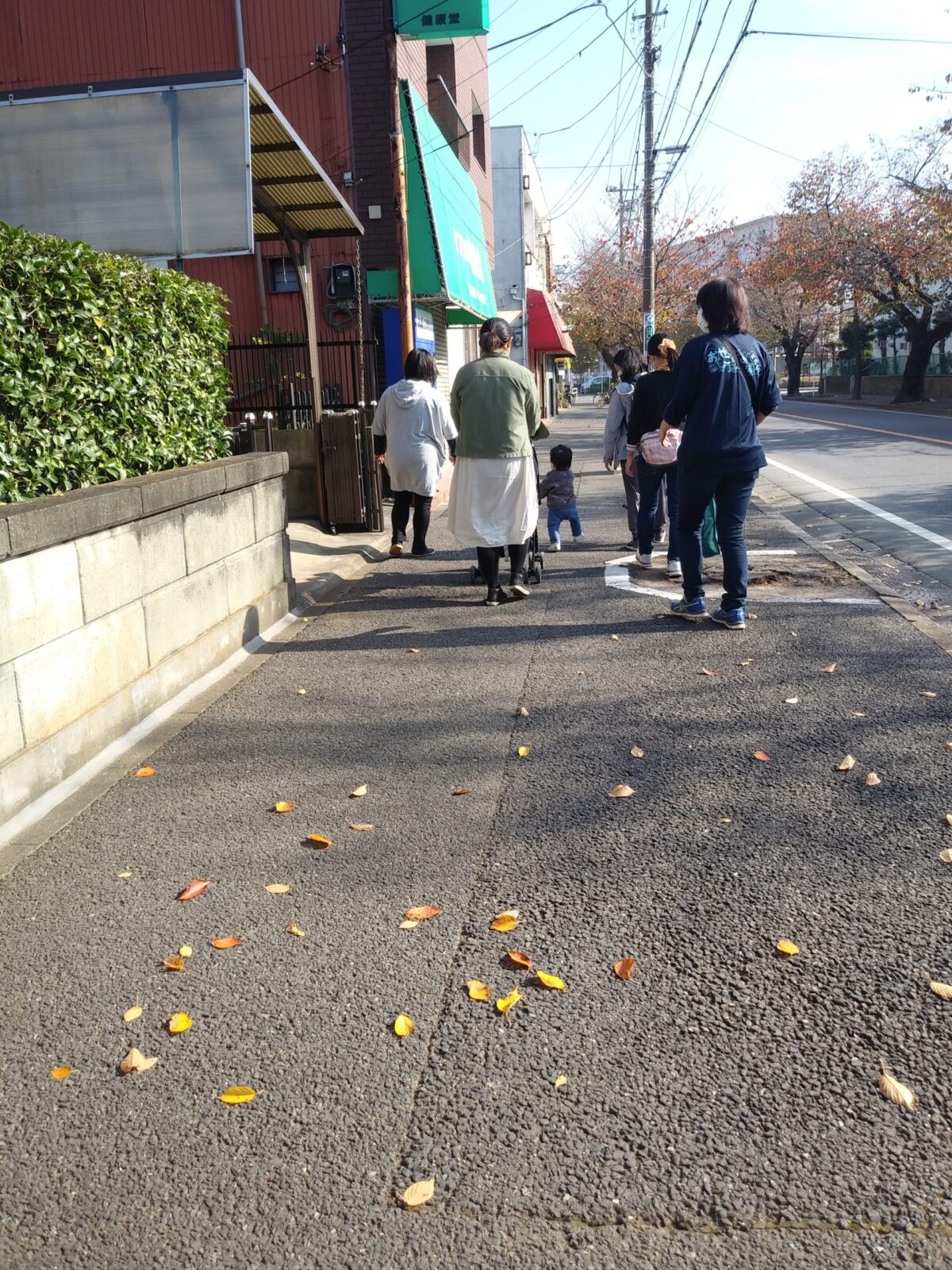 公園まで、ゆっくりゆっくり☺️はっぱ拾ったり~みんなでおしゃべりして~♪