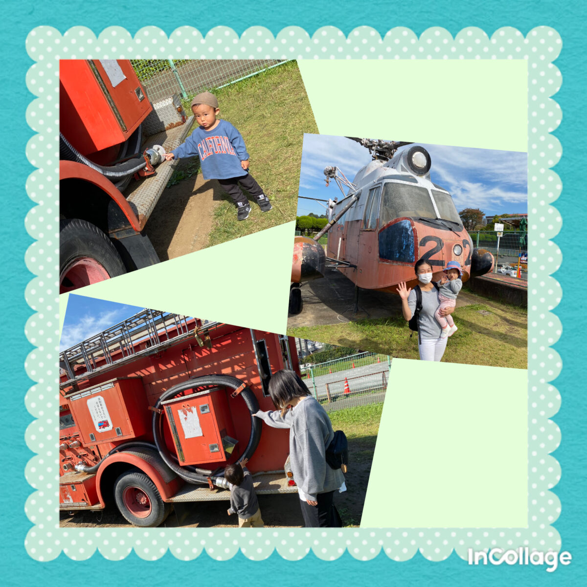カートに乗ったり、消防車🚒やヘリコプターを見たり〜♫