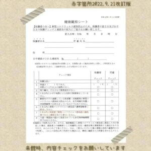 ★ひろばをご利用する際には、こちらの健康観察シートにすべてチェックが入ることをご確認の上お越しください。