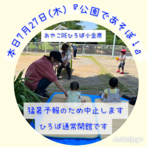 7月27日『公園であそぼ!』中止です