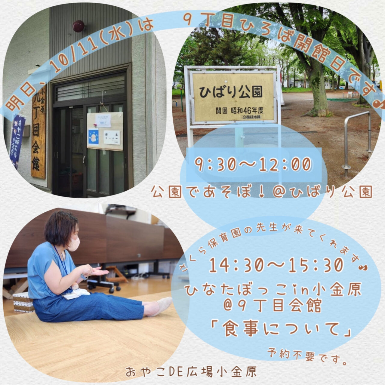 明日、10/11(水)は公園で遊ぼ!&ひなたぼっこin小金原@9丁目会館