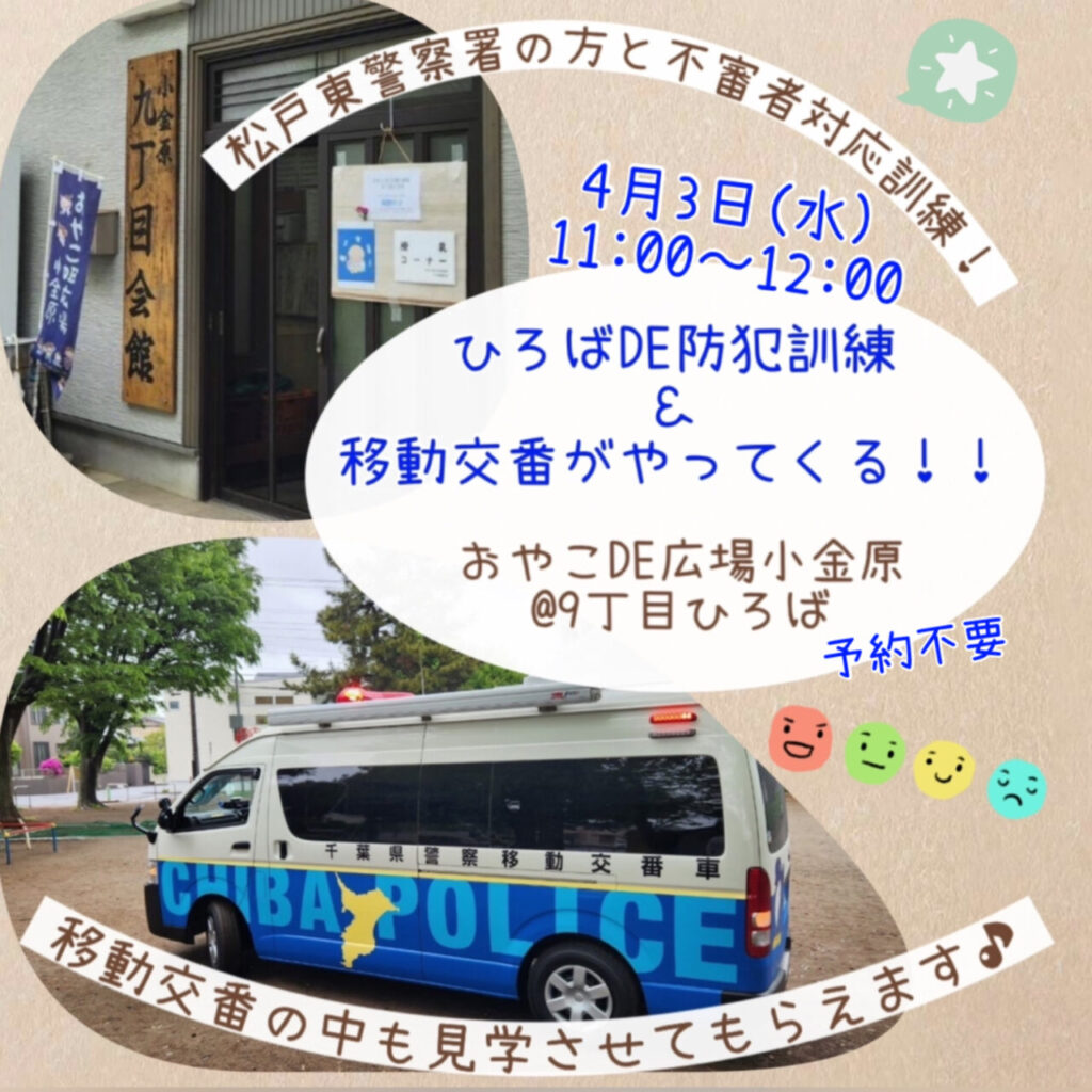4月3日(水)ひろばDE防犯訓練&移動交番がやってくる!!
