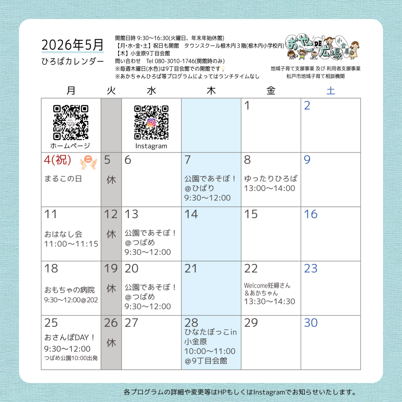 開館日時:月・水・木・金・土 9:30〜16:30 『ご利用案内』『お知らせ』をご覧ください。 引き続き、電話やメールでの相談も受け付けています。 聞いてほしい、あんなことこんなこと。 遠慮なくご連絡お待ちしています。 080-3010-1746 受付時間 9:30~16:30 [ 月・水・木・金 ・土] oyako_koganehara@m-harmony.org ※メールをくださる場合、『@m-harmony.org』からのメールを受信できるよう、設定をお願いいたします。