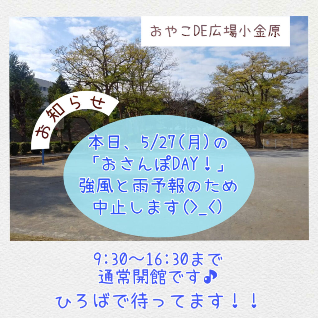 本日、5/27(月)「おさんぽDAY!」中止します(>_<)