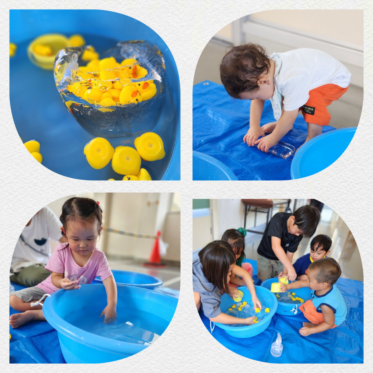 廊下でたらいの中に氷🧊