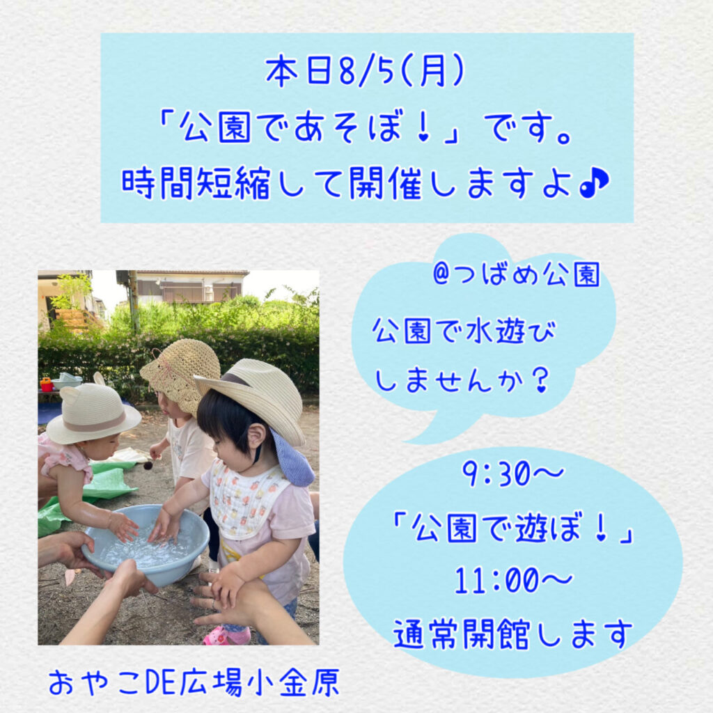 8/5(月)「公園で遊ぼ!」時間短縮して開催します。