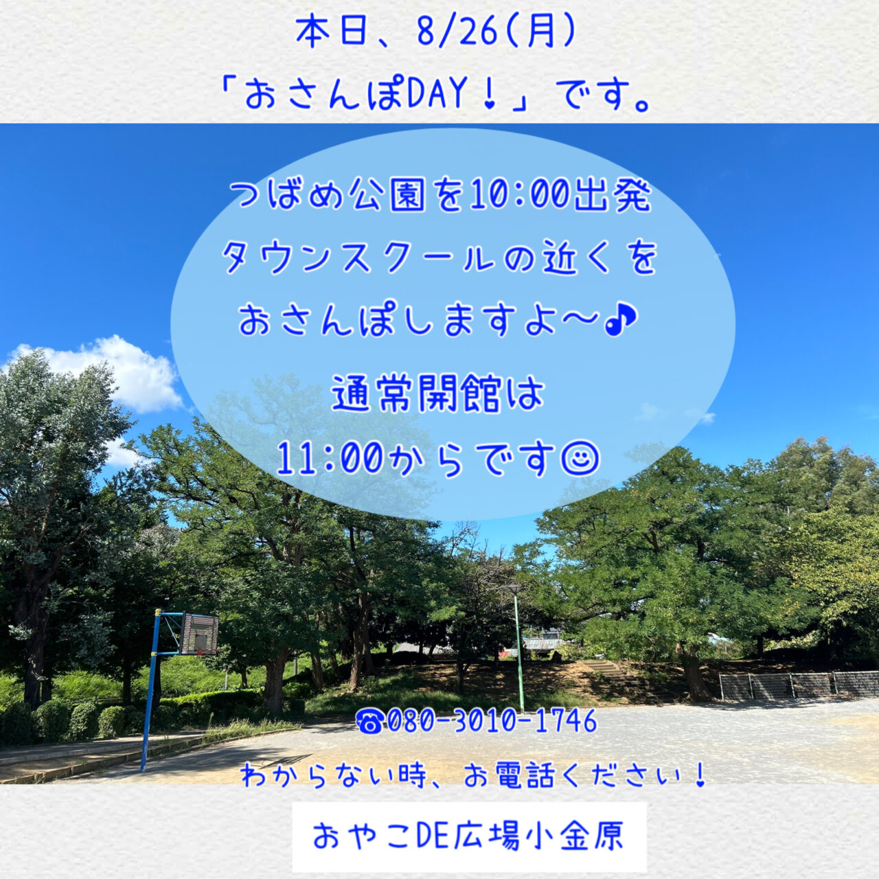 本日、8/26(月)「おさんぽDAY!」です。