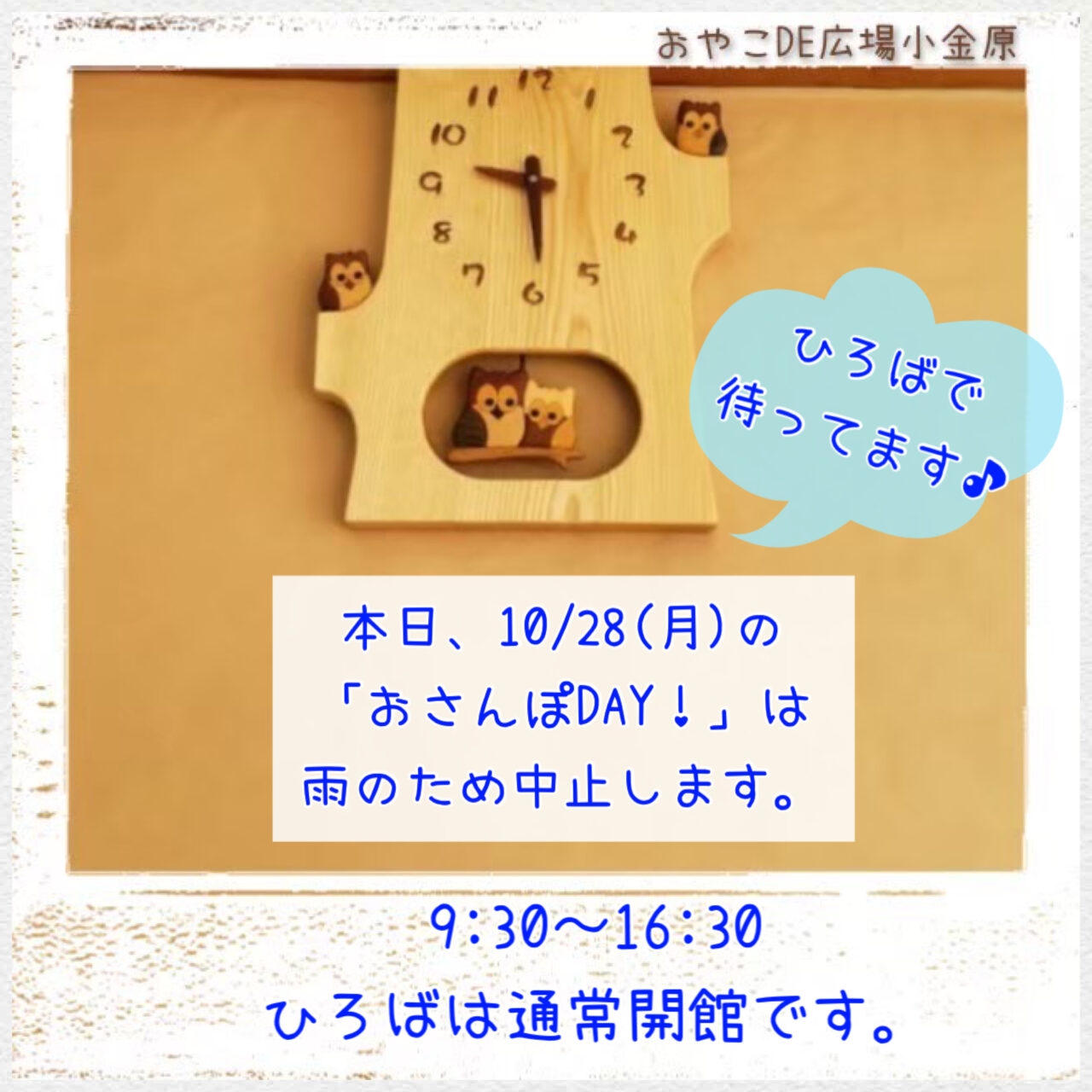 ひろばは、9:30〜16:30通常開館です☺︎