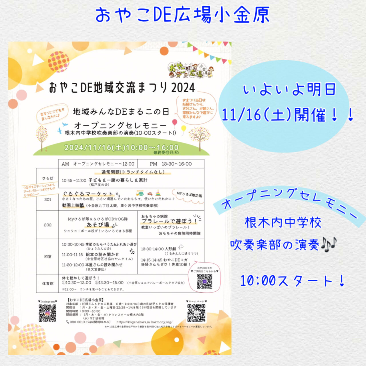 明日、11/16(土)開催!「おやこDE地域交流まつり2024」