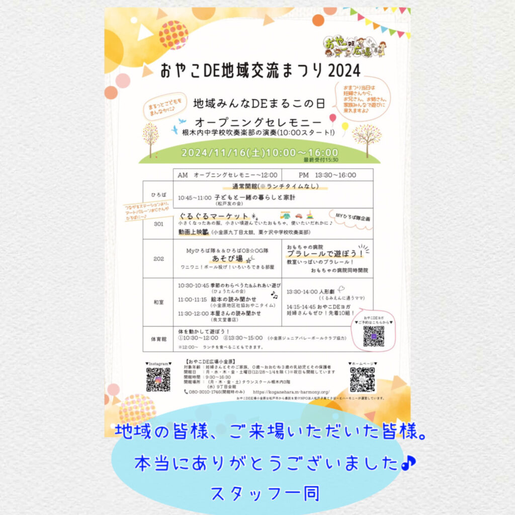 2024.11.16(土)「おやこDE地域交流まつり」開催しました!