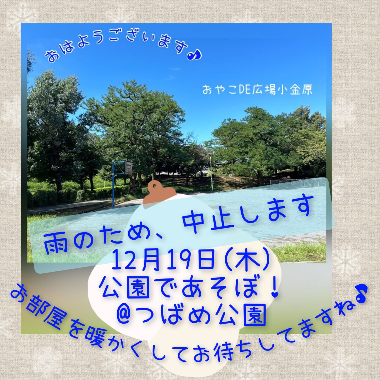 12月19日(木)公園であそぼ!中止のお知らせ