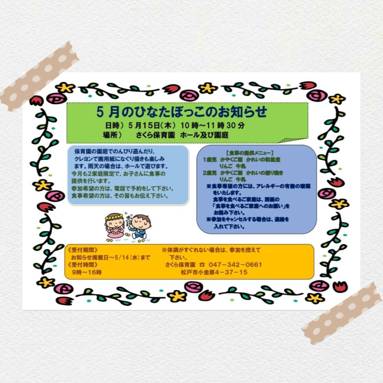 子育てコーディネーターから地域情報のお知らせ 5/15(木)