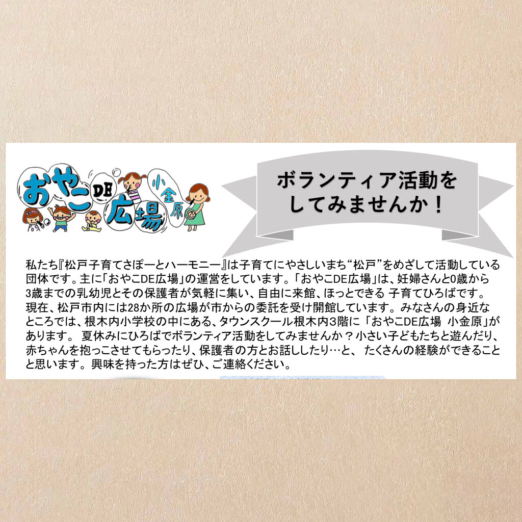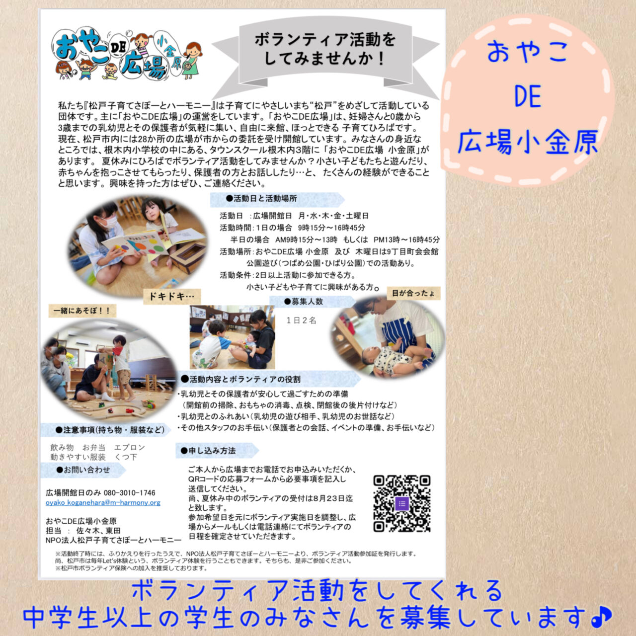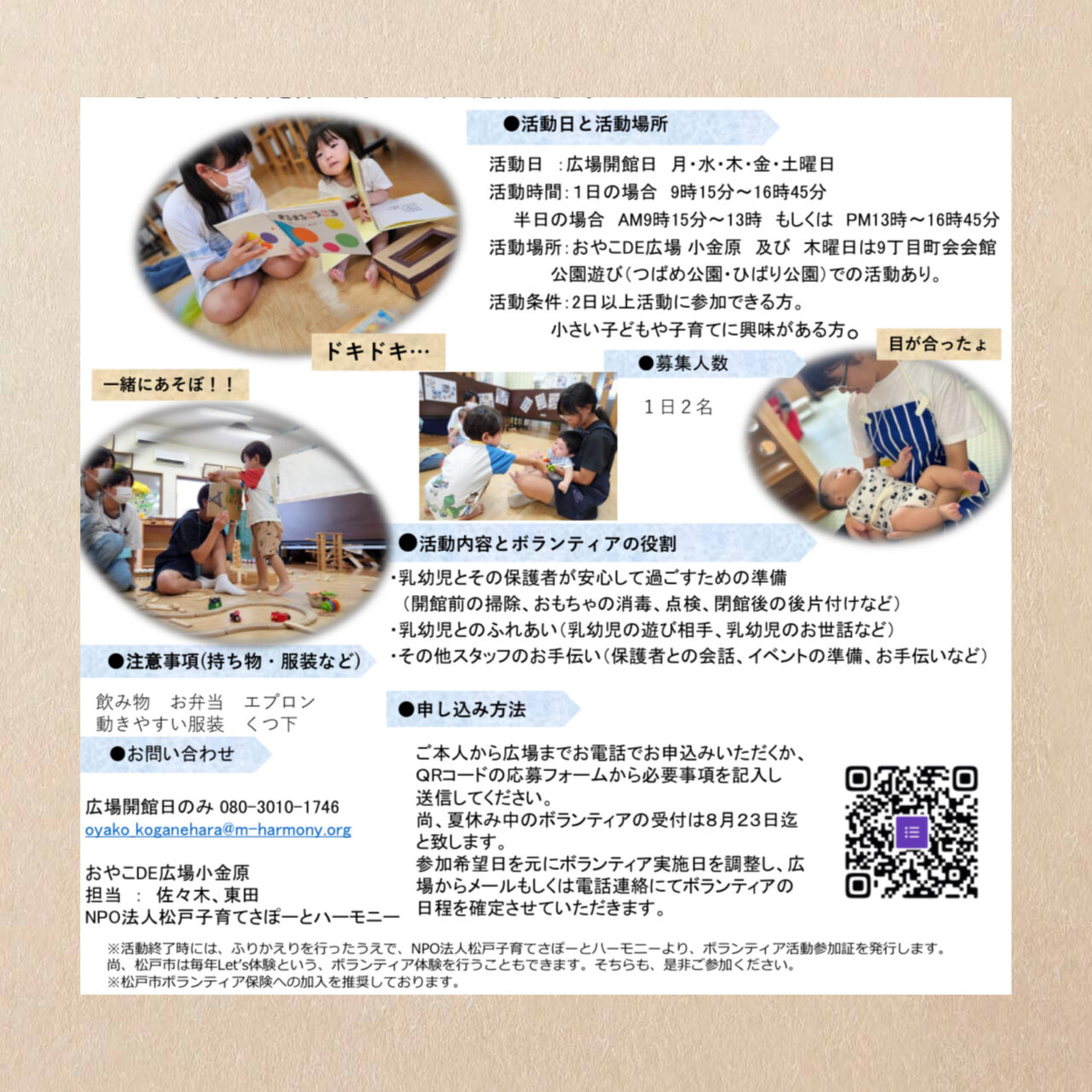 夏休みにひろばでボランティア活動をしてくれる中学生以上の学生のみなさんを募集しています♪