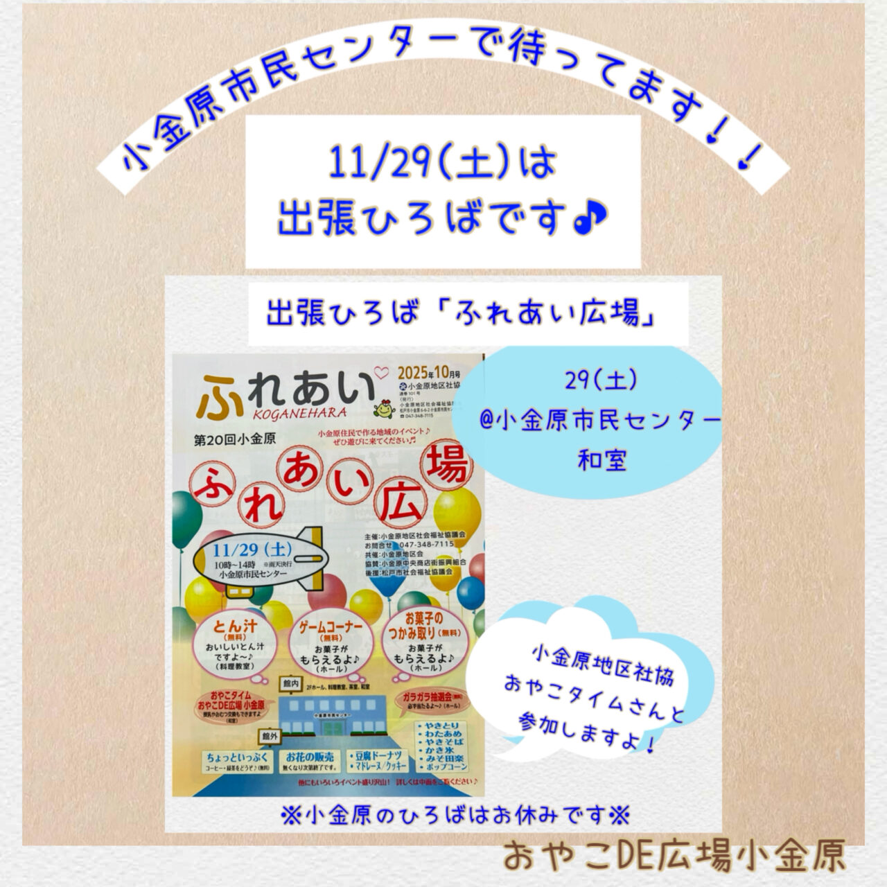 11/29(土)は出張ひろば@小金原市民センター