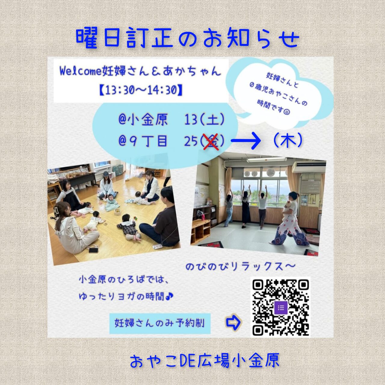 曜日の訂正のお知らせです♪