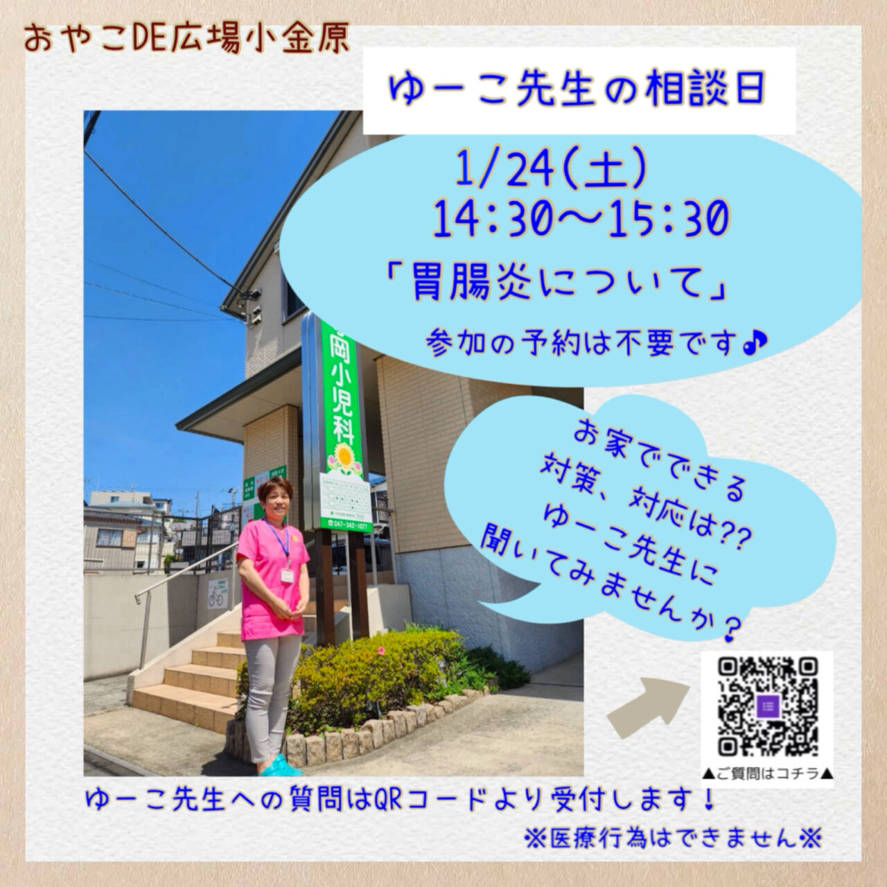1/24(土)守岡小児科医院『ゆーこ先生の相談日』胃腸炎について