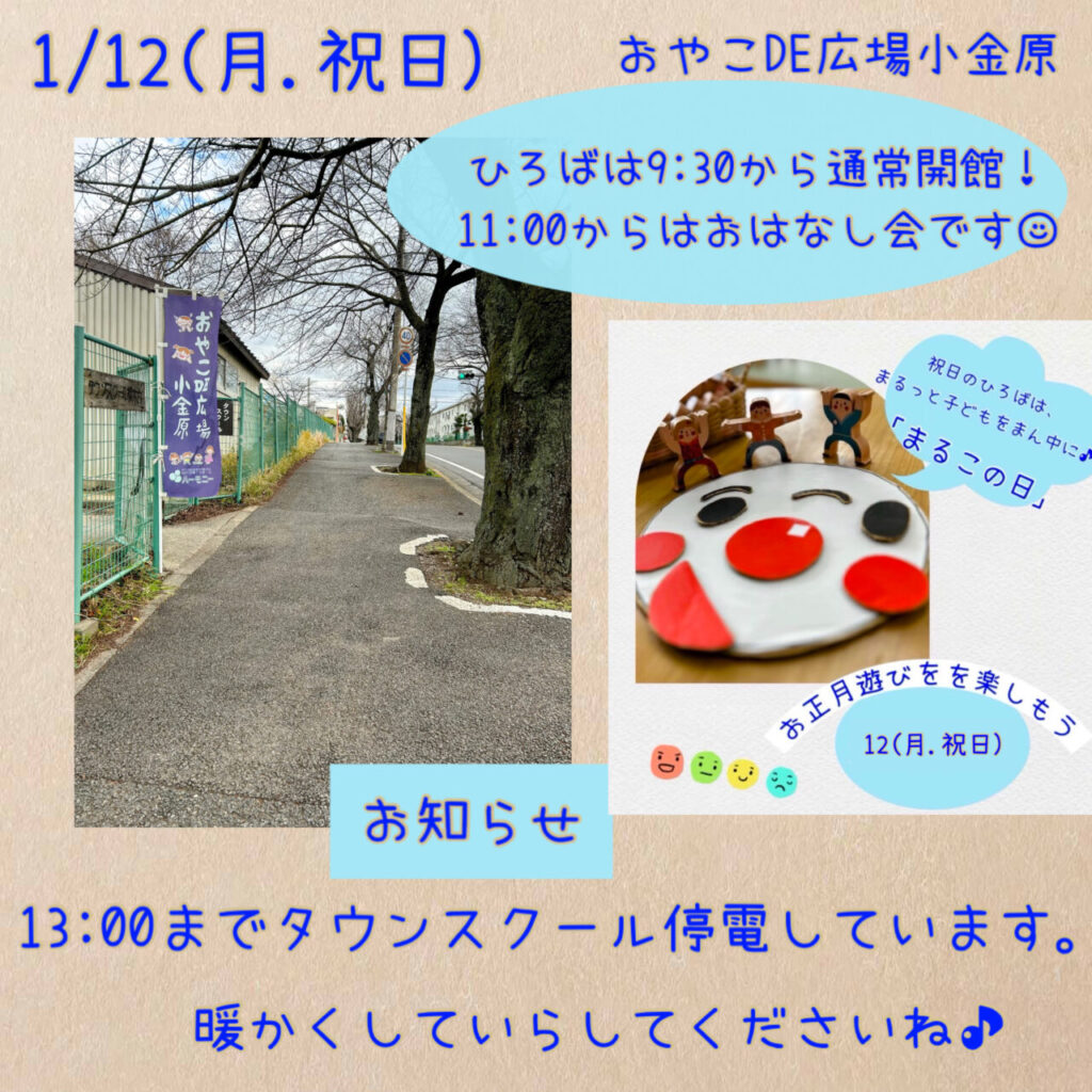 1/12(月.祝日) まるこの日です&停電のお知らせ