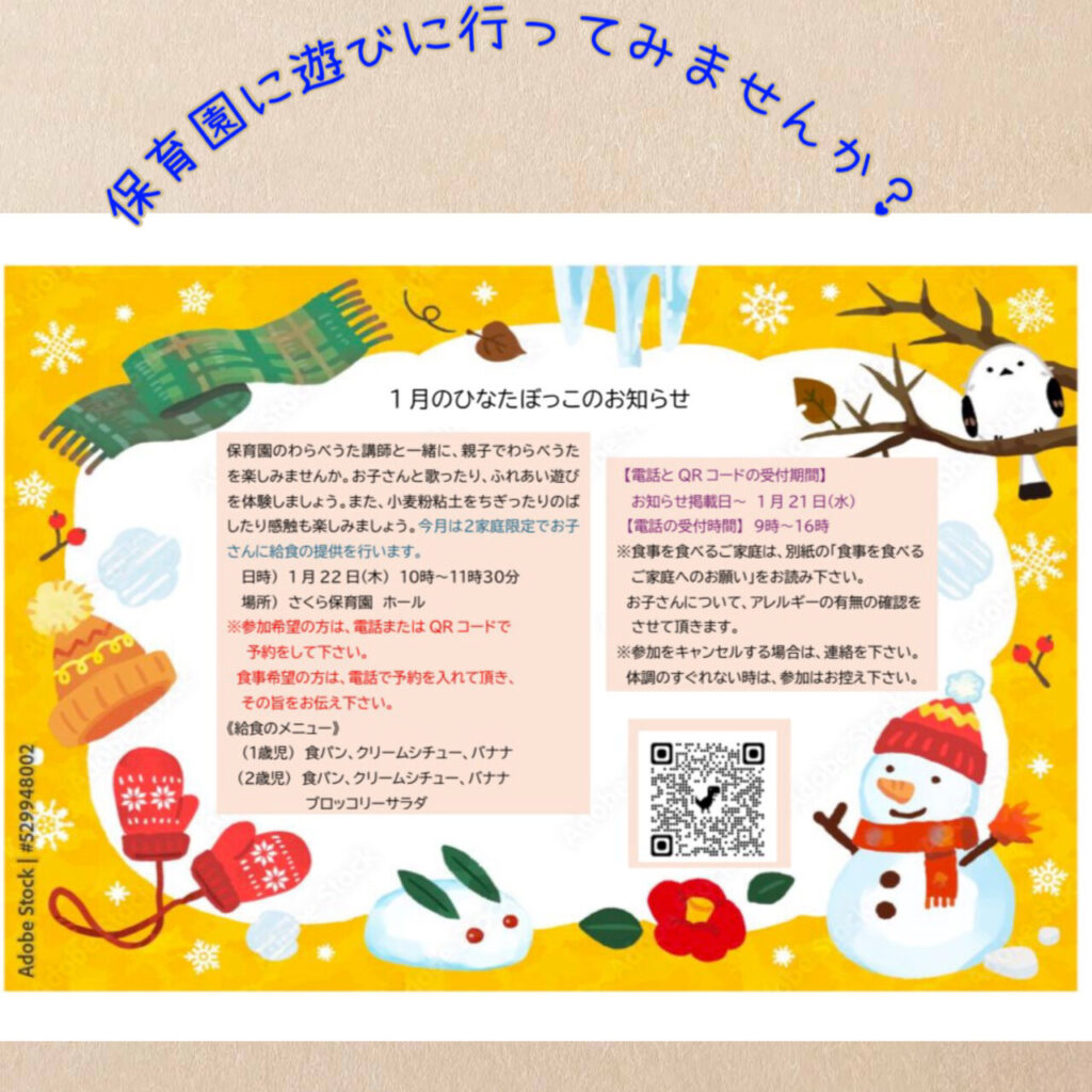 子育てコーディネーターから地域情報のお知らせ♪「さくら保育園」1/22(木)