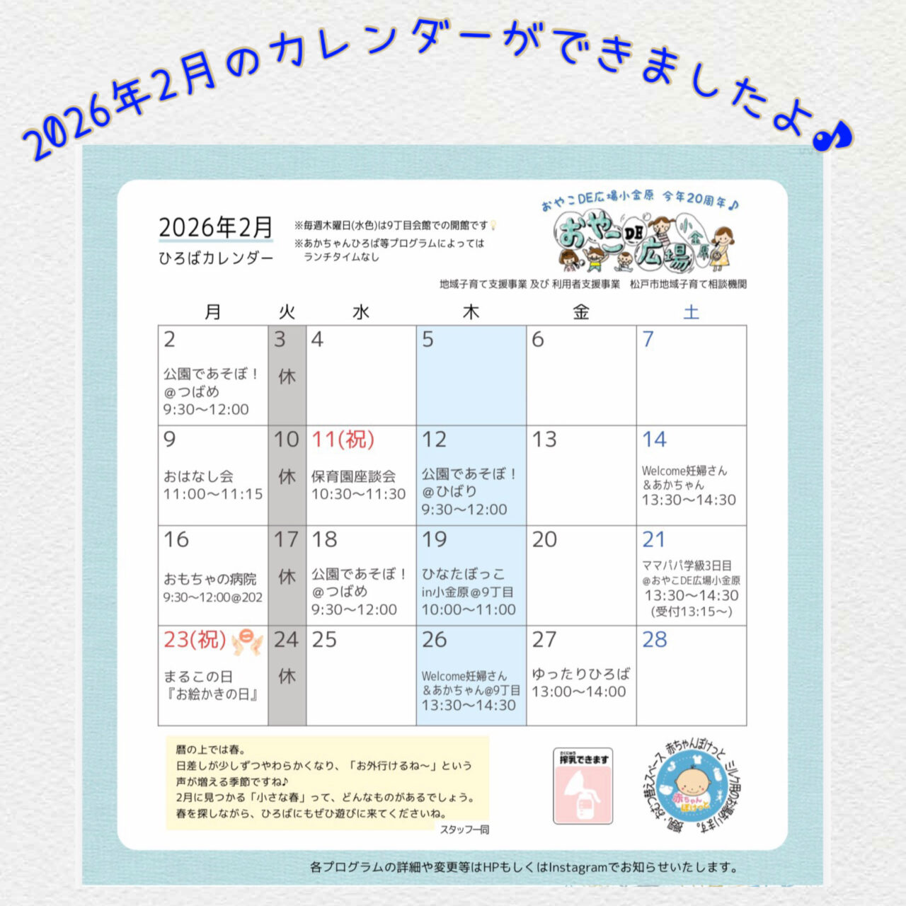 春を探しながら、ひろばにもぜひ遊びに来てくださいね。