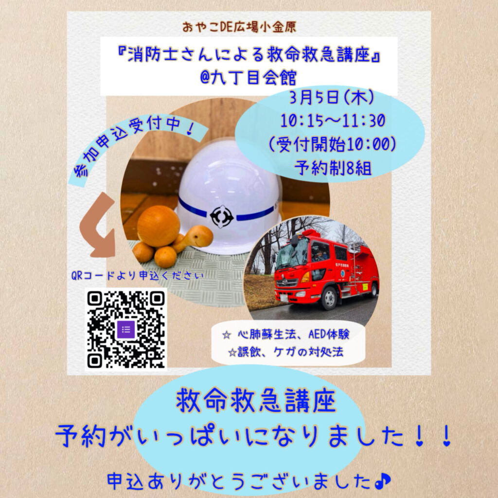 3/5(木)「救命救急講座」予約がいっぱいになりました!