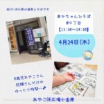 2025年4月24日 / 最終更新日時 : 2025年4月24日 おやこDE広場小金原STAFF お知らせ 本日4月24日(木) あかちゃんひろば@9丁目 おやこDE広場小金原 本日4月24日(木) 13:30~14:30は 『あかちゃんひろば@9丁目』 0歳児さんと妊婦さんの時間です♪ ひろばでお待ちしてますね♪