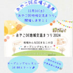 2024年10月16日 / 最終更新日時 : 2024年10月16日 おやこDE広場小金原STAFF お知らせ 11/16(土)『おやこDE地域交流まつり』開催! 11月16日(土) 10:00〜16:00 『おやこDE地域交流まつり』開催します!! おまつり当日は、 おやこDE広場小金原のひろばがある タウンスクール1階から3階までの教室で… 地域ボランティアさんやMyひろば隊が […]