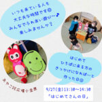 2024年9月26日 / 最終更新日時 : 2024年9月26日 おやこDE広場小金原STAFF お知らせ 明日、9/27(金)「はじめてさんの日」ありますよ。 明日、9/27(木) 13:30〜14:30は「はじめてさんの日」です! 『ひろばに行ってみたいけど…』 『いつ行こうかな…』 そんな人の ひろばに来るきっかけになったらいいなと 作った日です☺︎ 地域ボラ […]