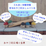 2024年9月19日 / 最終更新日時 : 2024年9月19日 おやこDE広場小金原STAFF お知らせ 明日、9/20(金) 『ふれあい体験授業参加おやこDEおしゃべり会』ありますよ。 明日、9/20(金)10:30〜11:30 『ふれあい体験授業参加おやこDEおしゃべり会』 ひろばで開催しますよ。 「ふれあい体験授業どうだった?」 「どんなこと話したの?」 ふれあい体験に参加していない人もおしゃべりし […]