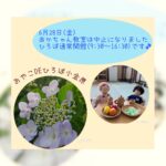 2024年6月27日 / 最終更新日時 : 2024年6月27日 おやこDE広場小金原STAFF お知らせ 6/28(金)「赤ちゃん教室」中止のお知らせ おやこDE広場小金原 明日6/28(金) の 「赤ちゃん教室」13:45〜14:45は 中止になりました。 9:30~16:30までひろば通常開館です♪ ランチタイムもありますよ〜😊 お待ちしています(o […]