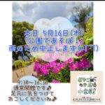 2024年5月16日 / 最終更新日時 : 2024年5月16日 おやこDE広場小金原STAFF お知らせ 公園であそぼ!雨のため中止にします おやこDE広場小金原 おはようございます♪ 残念ですが 本日5月16日(木)の「公園であそぼ!」は 雨のため中止にします(*T^T) 9:30~16:30までひろばは通常開館です♪ 足元に気をつけてお越しくださいね♪