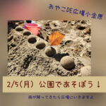 2024年2月5日 / 最終更新日時 : 2024年2月5日 おやこDE広場小金原STAFF お知らせ 公園であそぼ! 2/5(月)お知らせ 本日、2/5(月) 公園からひろばにもどります! 広場、暖かくして待ってまーす