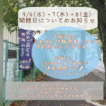 2023年9月4日 / 最終更新日時 : 2023年9月4日 おやこDE広場小金原STAFF お知らせ 9/6(水)・7(木)・8(金)の開館日についてのお知らせ。 9/6(水)・7(木)・8(金)の開館日についてのお知らせ。 午前中は、 「ふれあい体験授業」のため予約制のひろばです。 午後は、 13:00〜16:30まで通常開館です♪ (ランチタイムはありません) 9/6(水)の9 […]