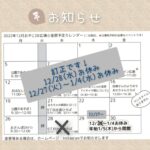 2022年12月21日 / 最終更新日時 : 2022年12月21日 おやこDE広場小金原スタッフ2 お知らせ お知らせ!12月チラシ訂正です おやこDE広場小金原 【お知らせ】 12月チラシ訂正です! 12/28(水)は、お休みです! 年末年始、小金原広場は••• 12/27(火)~1/4(水)お休みです 年末12/26(月)まで 年始1/5(木)から開館です […]