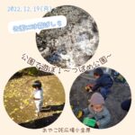 2022年12月24日 / 最終更新日時 : 2022年12月24日 おやこDE広場小金原STAFF ひろばの様子 2022.12.19(月)「公園で遊ぼ!」 公園についたら あちこちに「霜ばしら」 冷たくシーンとした空気が… だんだんあったかくなって… 公園はどんどんにぎやかに♪ 暖かい日には出会えない、 霜ばしらに、凍った砂や葉っぱの感触… […]