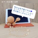 2022年5月12日 / 最終更新日時 : 2022年5月12日 おやこDE広場小金原STAFF お知らせ 明日、5/13(金)「オンライン広場」です! 明日、5/13(金)10:30~11:00は 「オンライン広場」です。 いっしょにリズム体操♪ 雨予報の明日…☔ お出かけはちょっと… でも、 オンラインなら、お家にいながら遊べます […]